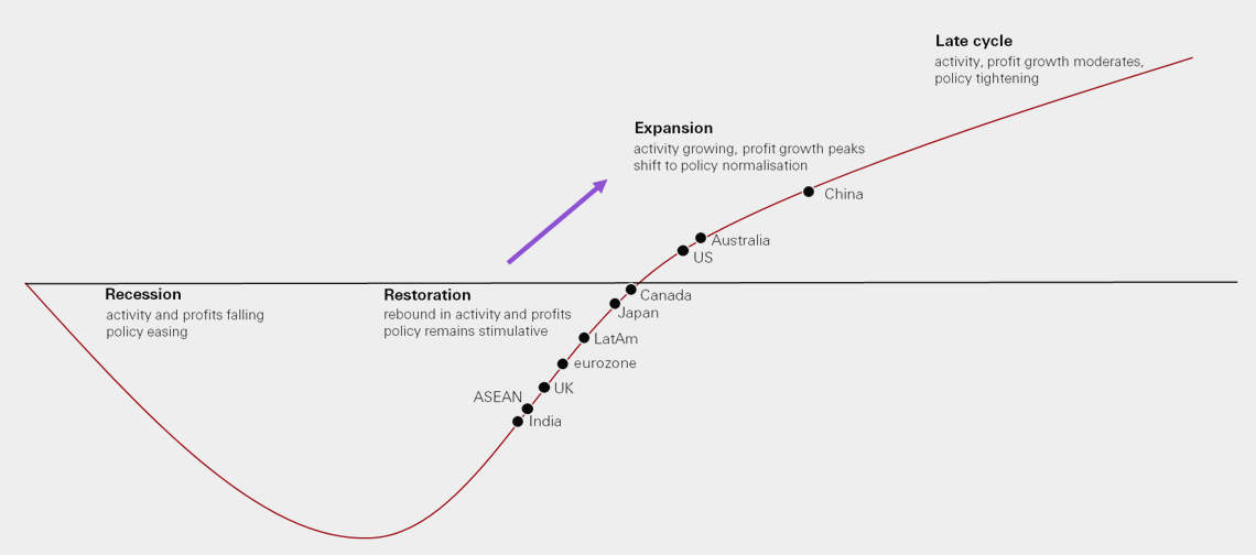 The business cycle is moving quickly, but the evidence suggests that we are now entering a mid-cycle, expansion phase. Within that trend, there are some important regional divergences.