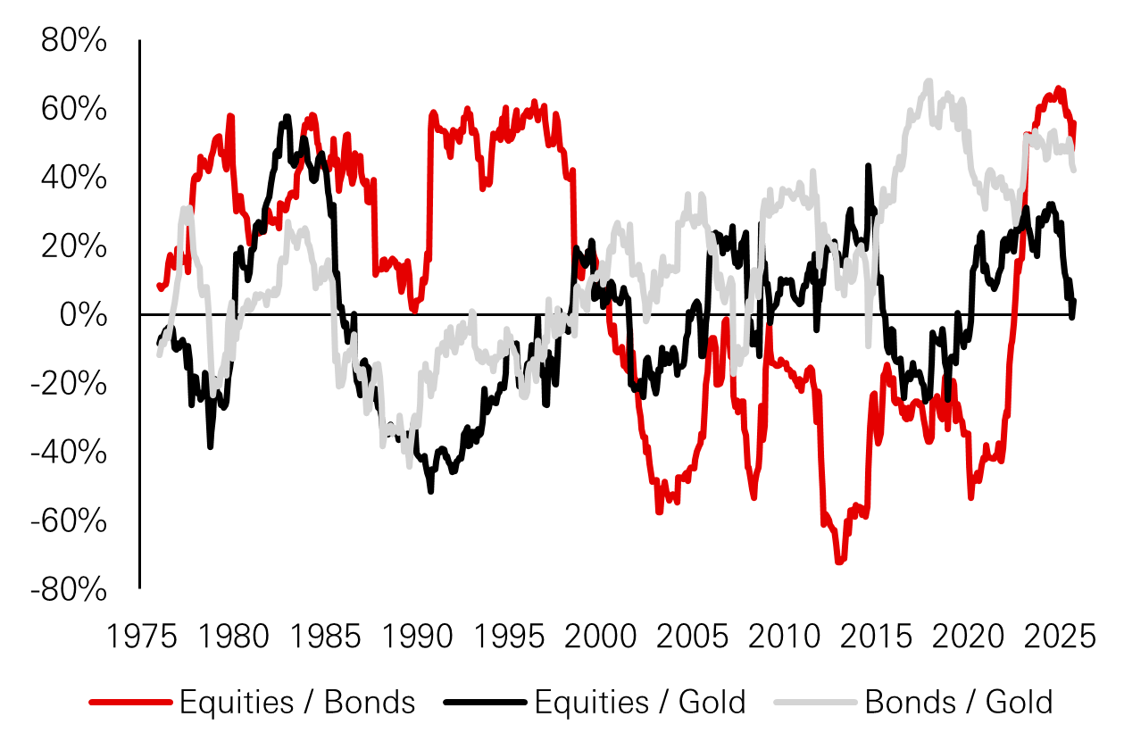 • Rising sovereign debt, shifting policy priorities, and geopolitical fragmentation weaken the hedging power of government bonds and currencies, increasing the relevance of gold as a diversifier against credibility and balance-sheet risks