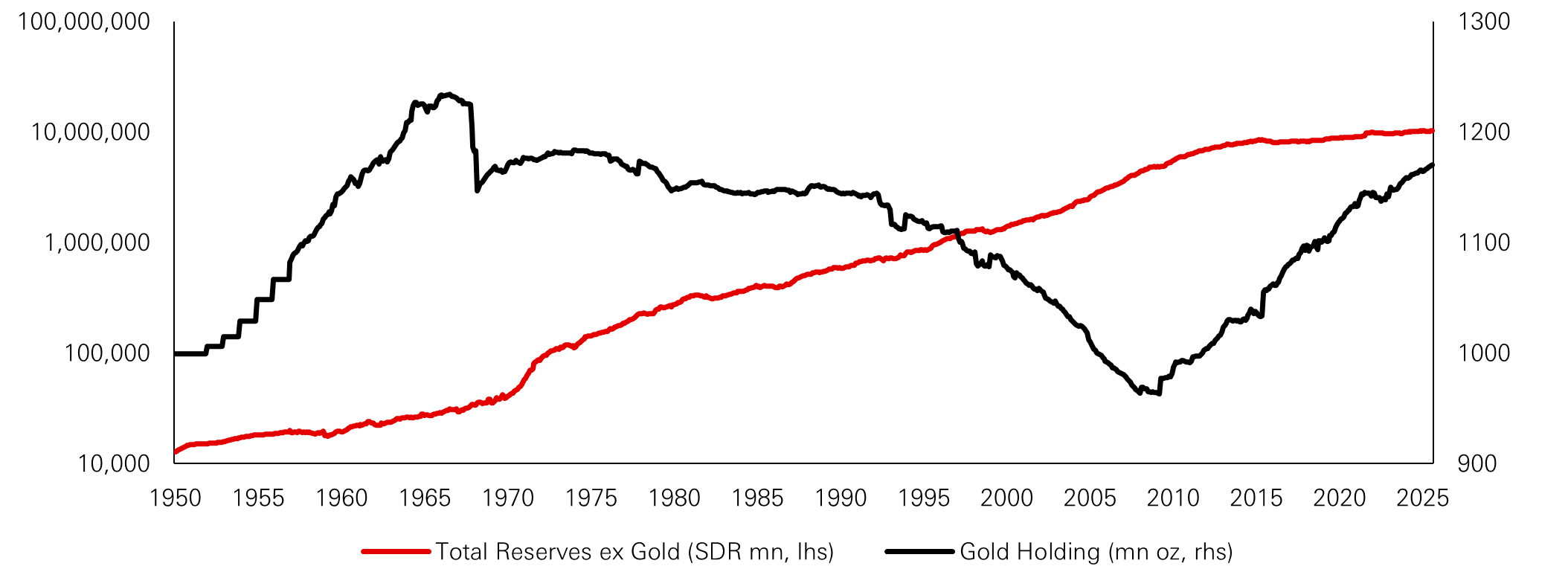 Figure 4: IMF world reserves ex gold versus gold reserves